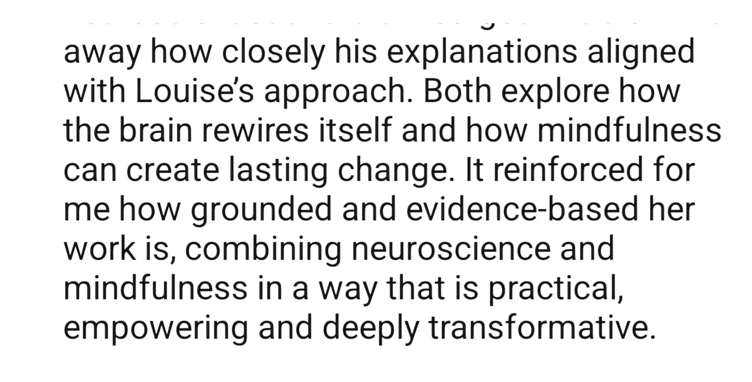 Leaders trust this work because Louise blends lived experience, neuroscience, emotional intelligence and practical tools in a way that makes calm feel achievable — even for high-capacity women under pressure.